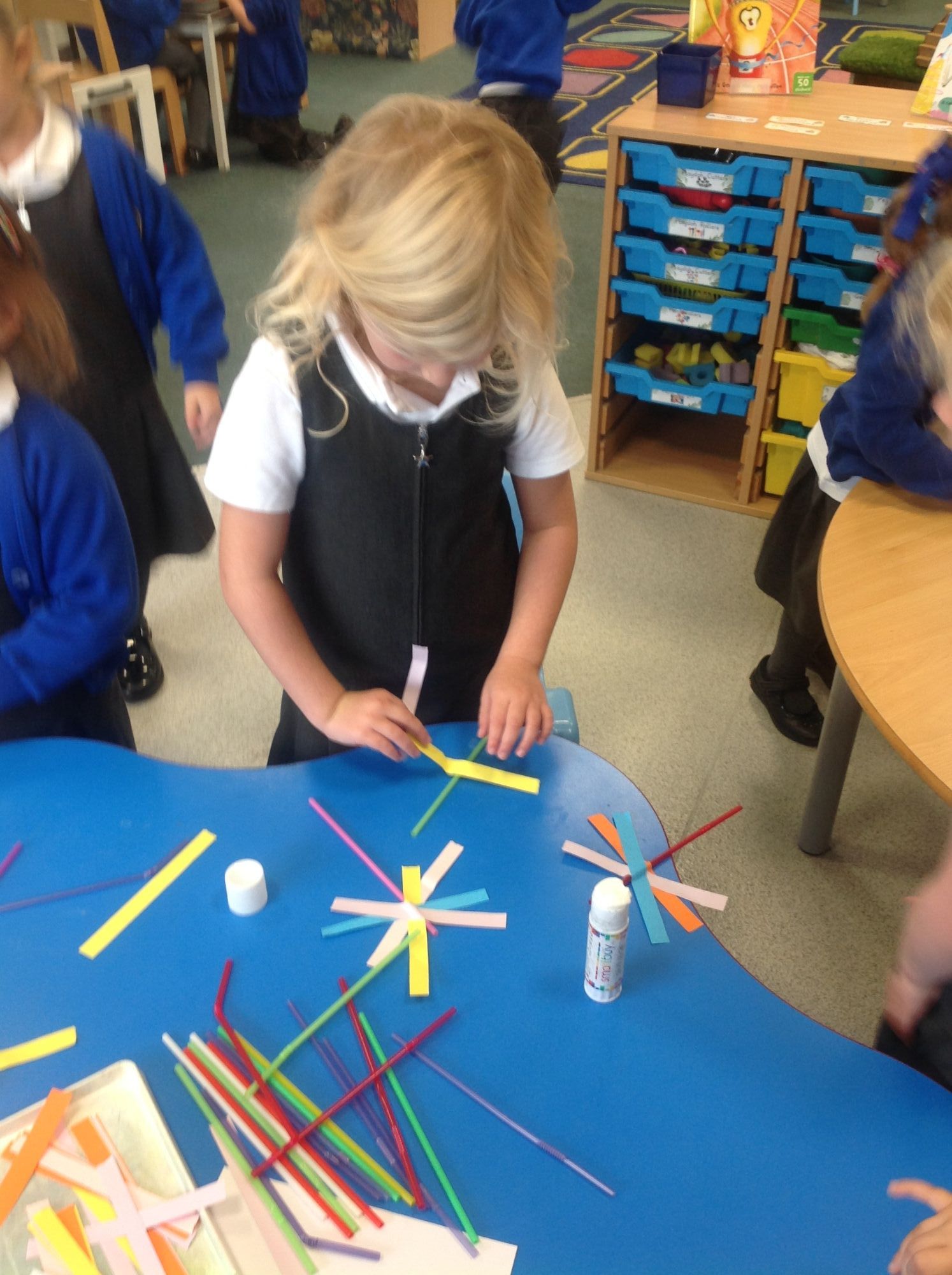 We have also been working hard on our key skills. We have been doing an activity carousel every day when we practise our handwriting, fine motor skills using scissors to cut and stick accurately, making numbers up to 5 in different ways and tracing our numbers and building space rockets and stations out of building blocks.