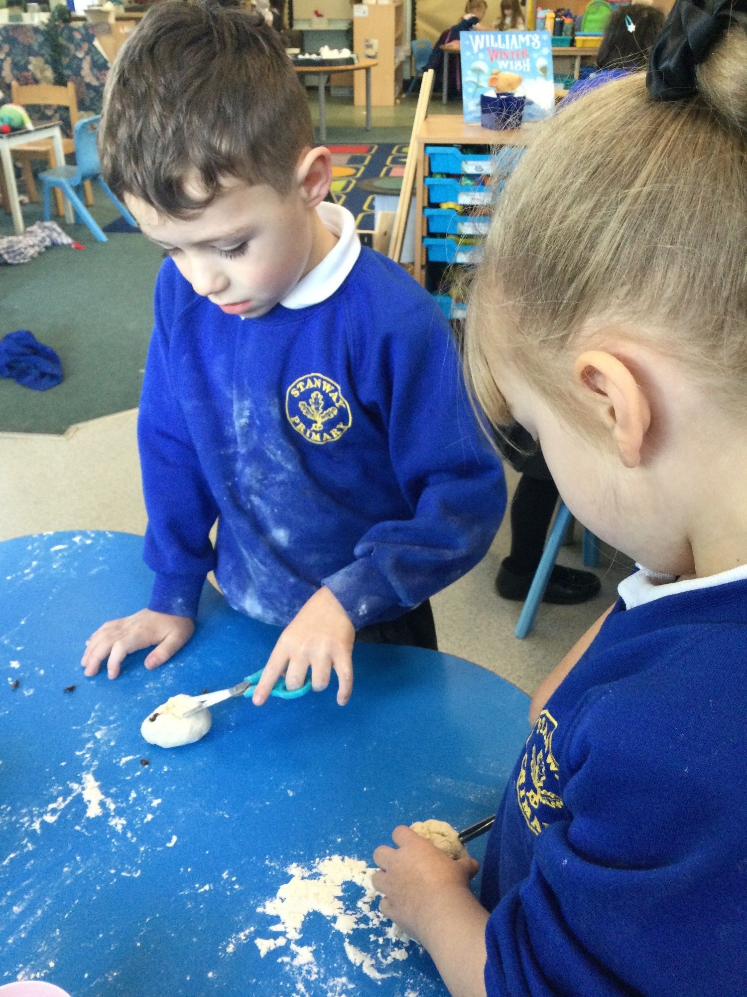This week we enjoyed listening to the story One Snowy Night by Nick Butterworth and thought about how animals keep warm in winter. A highlight of the week was making hedgehog bread rolls. We took turns to mix the ingredients, knead the dough and then shaped them into little hedgehogs. We used clean scissors to snip in spikes. We have also enjoyed some focused learning sessions practising, key skills in maths, writing and problem-solving.