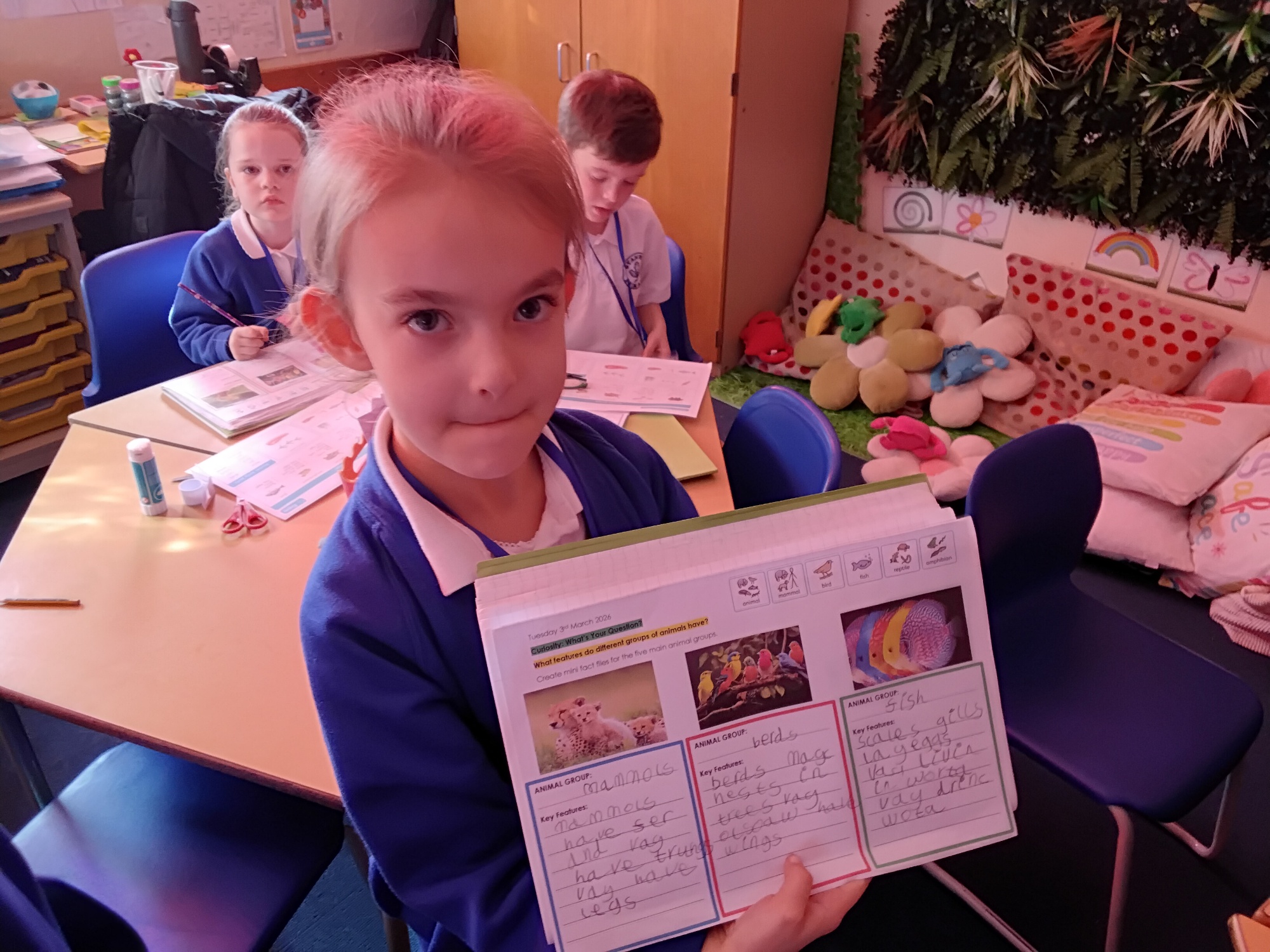 On Friday last week, our parents and carers came into our class to see all the amazing work that we had completed as Animal Discovery experts. We really enjoyed sharing our letters to Colchester Zoo, our animal posters and our wonderful artwork! This week, we had our class assembly on dinosaurs. We showcased our learning, recited a poem and even performed a little dance! We all did a fantastic job, and we are very proud of ourselves!