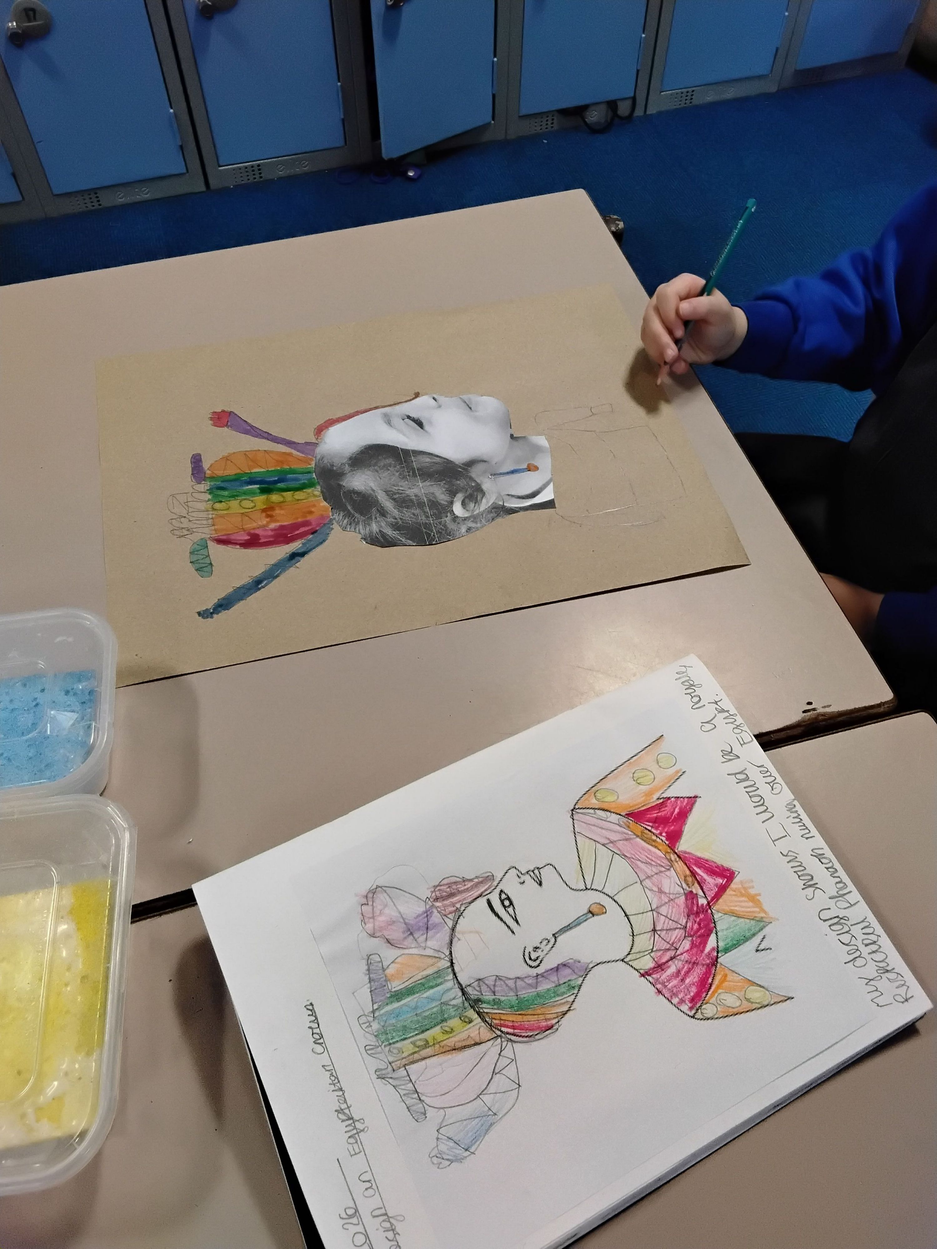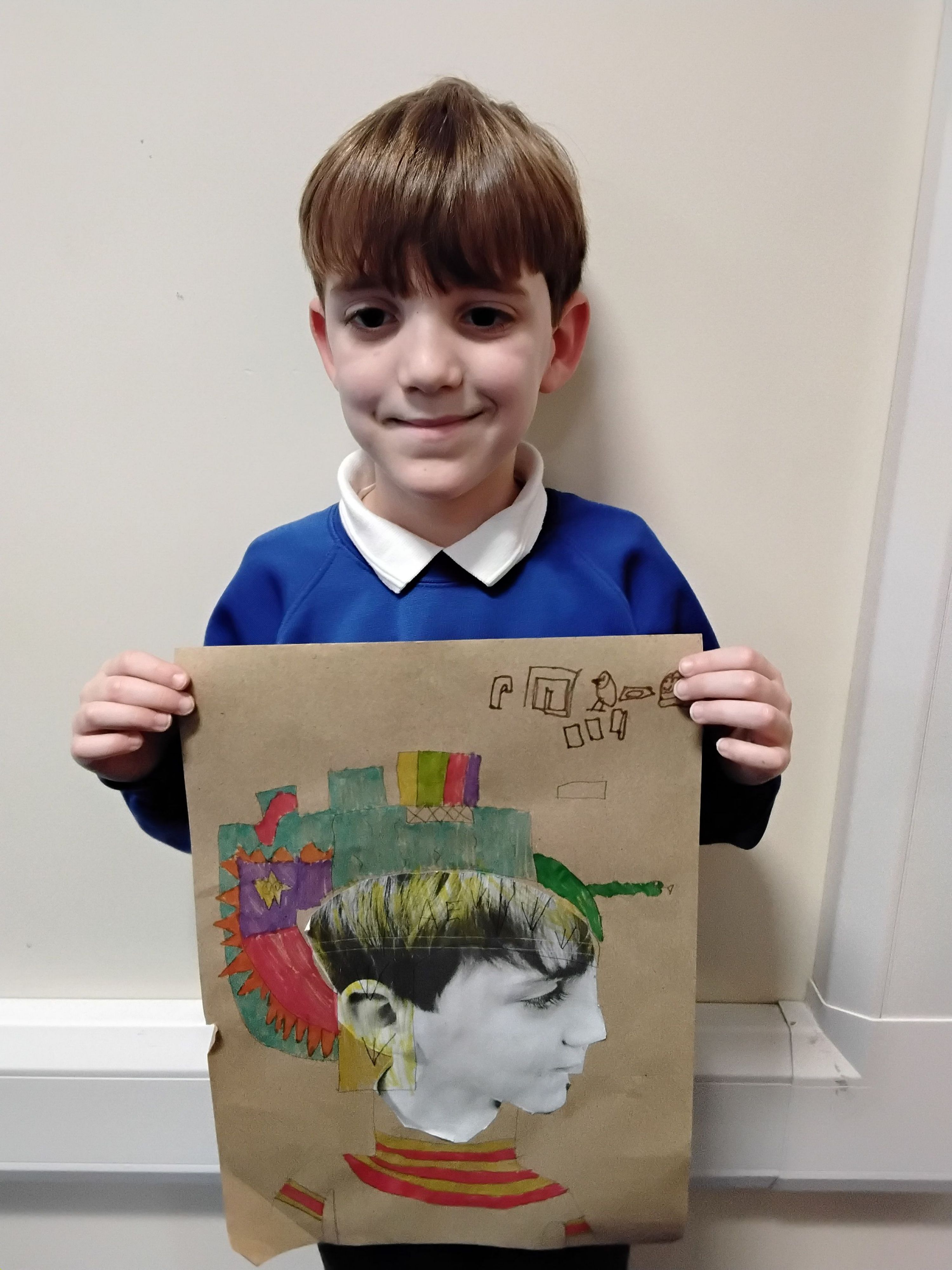 As a group, they collaborated on a large mixed-media piece, printing clouds and waves before adding buildings, boats, and people using collage, paint, and drawing. The result was a fantastic, colourful piece of artwork that reflected both individual creativity and teamwork.